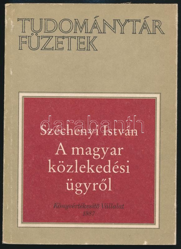 Széchényi István: A magyar közlekedési ügyről. Tudománytár füzetek. Bp.,1987, Könyvértékesítő Vállalat. Térkép-melléklettel. Kiadói papírkötés, kissé kopott borítóval.