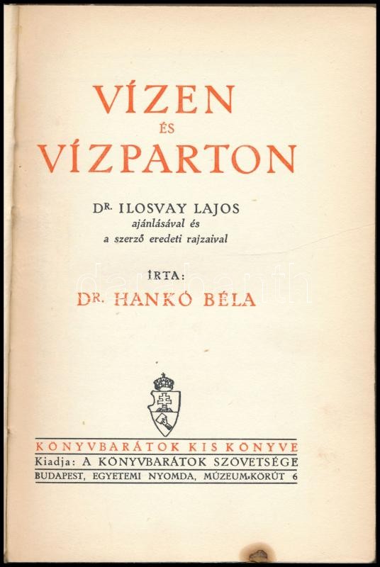 Dr. Hankó Béla: Vízen és vízparton. Könyvbarátok Kis Könyve. Bp.,[1933],Kir. M. Egyetemi nyomda. Kiadói egészvászon-kötés, kissé foltos borítóval és lapokkal.