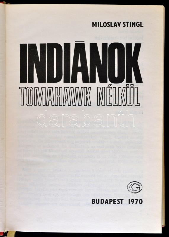 Miloslav Stingl: Indiánok tomahawk nélkül. Fordította: Stelczer Árpád.... https://www.darabanth.com/hu/337-Gyorsarveres/337.0/Konyvek/Konyvek-Utazas-helytortenet~1000001/Miloslav-Stingl-Indianok-tomahawk-nelkul-Forditotta-Stelczer-Arpad-Bp-1970-Gondolat-Kiad~II1890672