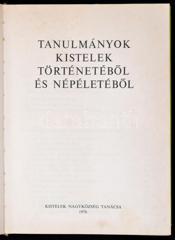 Leírás: Tanulmányok Kistelek történetéből és népéletéből. Kistelek, 1976, Kistelek Nagyközség Tanácsa. Kiadói nylon-kötés, kiadói papír védőborítóban. Megjelent 1500 példányban.