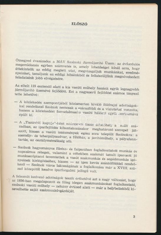 A MÁV Szolnoki Járműjavító Üzem története. 1856-1981. Összeállították: Csák Sándor, Galambos Ernő. Szerk. Kaposvári Gyula. Szolnok, 1981, Szolnoki Nyomda, 73+2 p.+LXXXVIII t. (fekete-fehér fotók.) Kiadói papírkötés, jó állapotban.