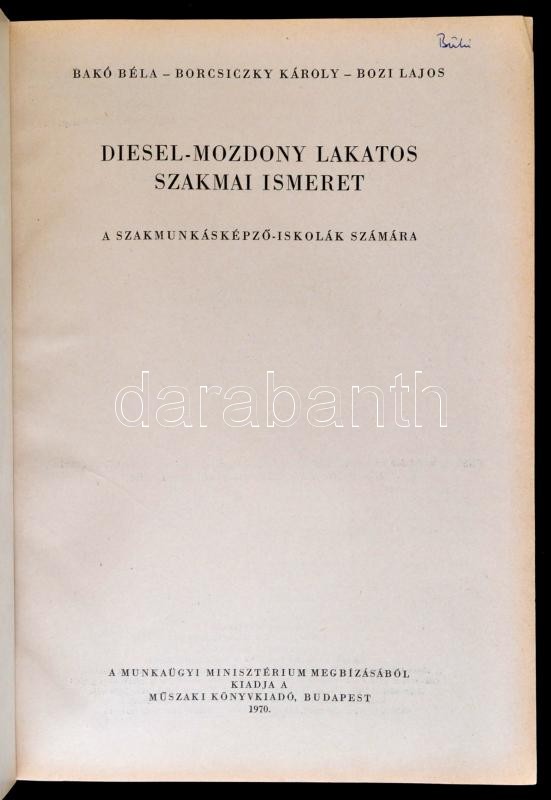 Leírás: Bakó Béla-Borcsiczky Károly-Bozi Lajos: Diesel-mozdony lakatos szakmai ismeret. Bp.,1970, Műszaki. Kiadói papírkötés. Megjelent 1040 példányban.