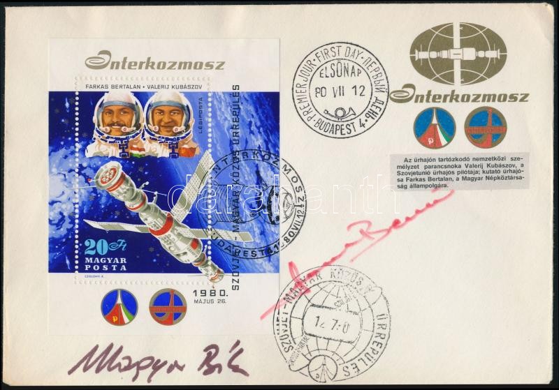 1980 Interkozmosz FDC rajta Farkas Bertalan űrhajós aláírásával https://www.darabanth.com/hu/337-Gyorsarveres/337.0/Mutargy-papirregiseg-egyeb/Alairas~500019/1980-Interkozmosz-FDC-rajta-Farkas-Bertalan-urhajos-alairasaval~II1895147