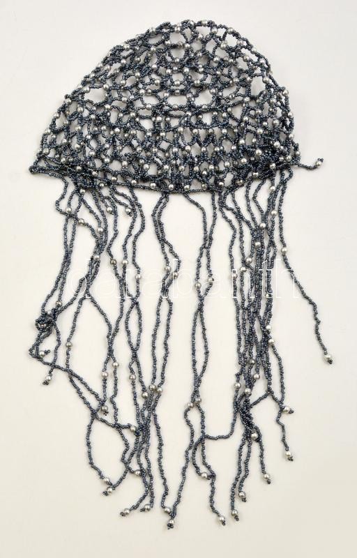 Leírás: Gyöngyből fűzött sapkaszerű fejdísz, jó állapotban