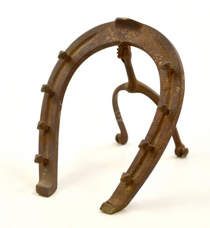 Leírás: Patkó alakú fém tolltartó, rozsdás, 14×11,5 cm