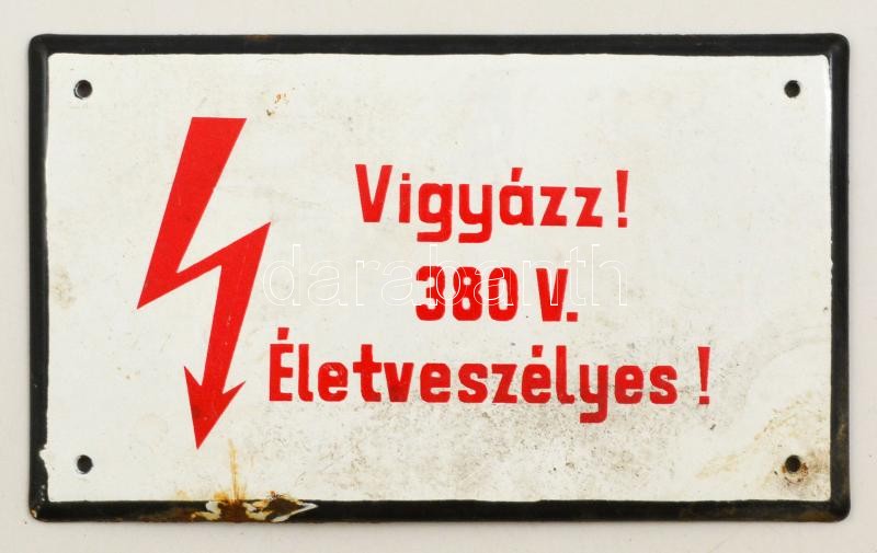 Vigyázz 380 V életveszélyes. Zománc tábla. 20x12 cm https://www.darabanth.com/hu/337-Gyorsarveres/337.0/Mutargy-papirregiseg-egyeb/Bolhapiac~500011/Vigyazz-380-V-eletveszelyes-Zomanc-tabla-20x12-cm~II1874140