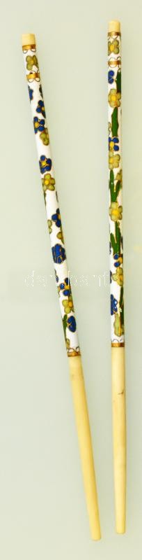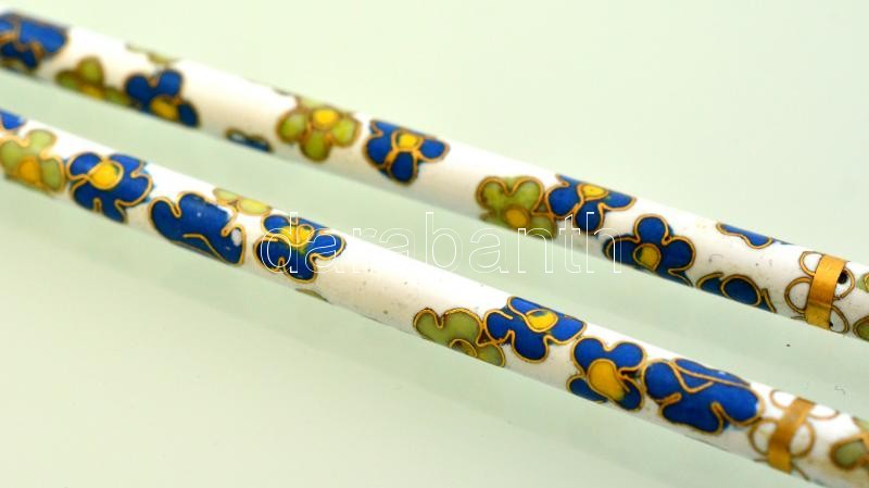 Leírás: Virágmintás zománcozott, részben fém evőpálcika, 2 db, h: 21,5 cm