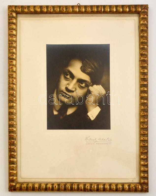 Leírás: cca 1906-1910 Ady Endre költő (1877-1919) portréfotója, Székely Aladár felvétele, hidegpecséttel jelzett fotó, üvegezett keretben, 17,5×13 cm