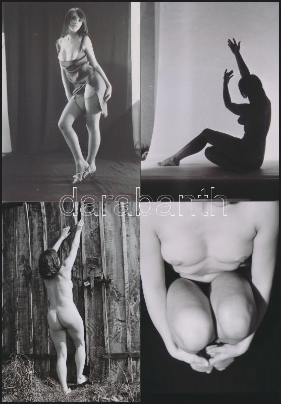 cca 1972 Csábítás kalapban, s anélkül, szolidan erotikus felvételek, 8 db vintage negatív (24x36 mm) + 12 db vintage fotó és/vagy mai nagyítás, 6x9 cm és 25x18 cm között, a negatívok és a papírképek között nincs összefüggés