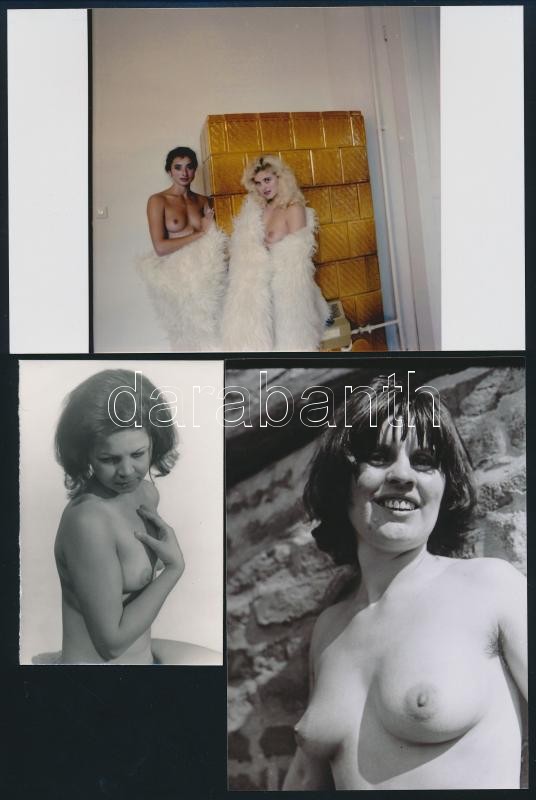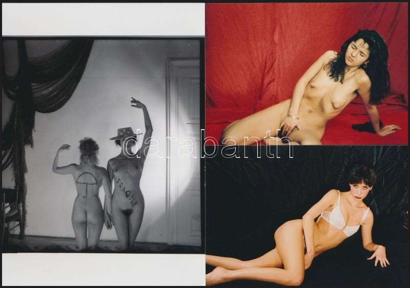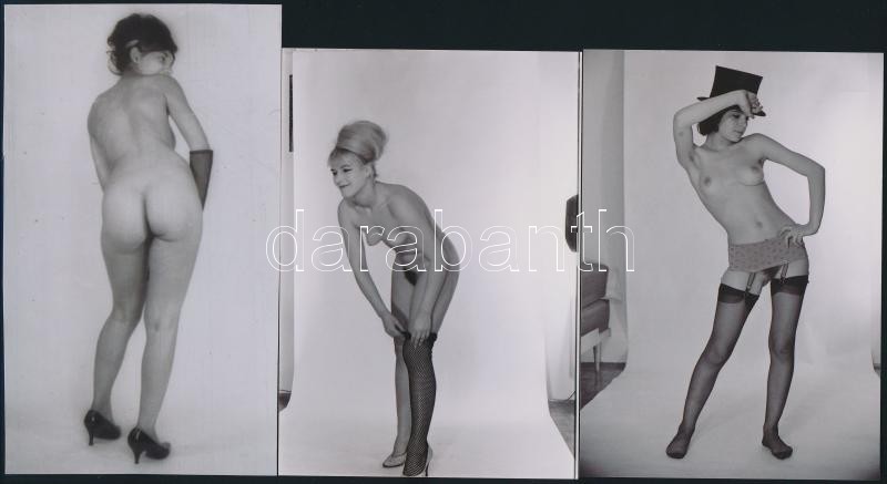 cca 1979 Femini gyönyörök, szolidan erotikus felvételek, 6 db vintage negatív + 10 db vintage fotó és/vagy mai nagyítás, 6x6 cm és 25x18 cm között, a negatívok és a papírképek között nincs összefüggés