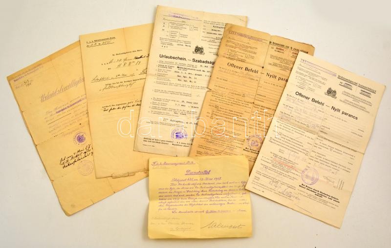 1915-1918 7 db különféle osztrák-magyar katonai okmány: nyílt parancs,... https://www.darabanth.com/hu/337-Gyorsarveres/337.0/Mutargy-papirregiseg-egyeb/Militaria~500027/1915-1918-7-db-kulonfele-osztrak-magyar-katonai-okmany-nyilt-parancs-szabadsagigazolas-st~II1893458