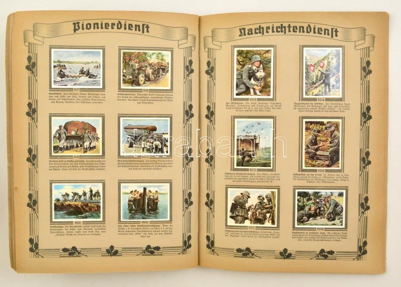 cca 1940 Die Deutsche Wehrmacht A német Wehrmacht komplett cigarettakép-gyűjtómappa 270 képpel szép állapotban / The Wehrmacht cigarette-picture collection with 270 pictures. Complete nice condition