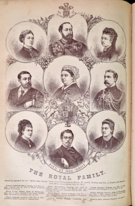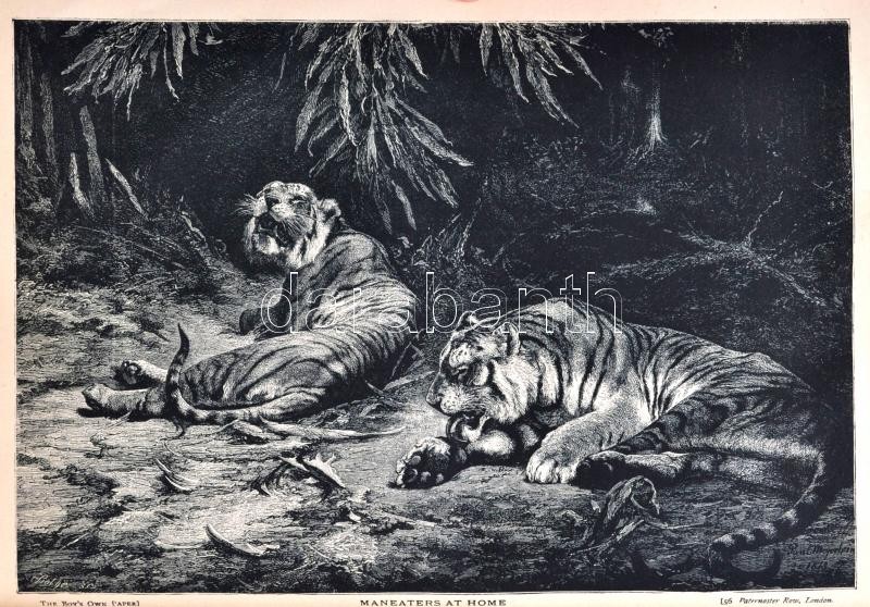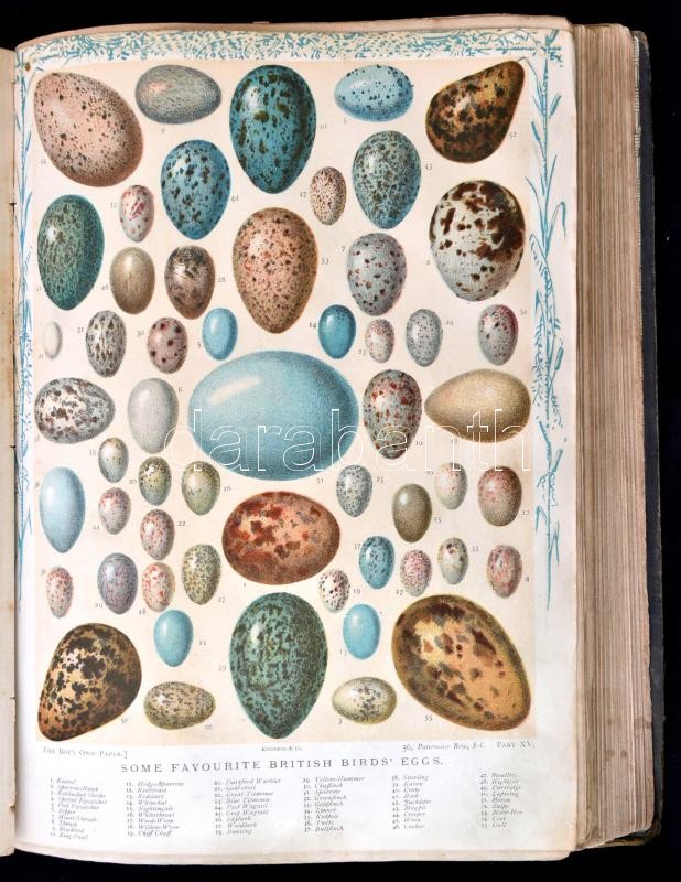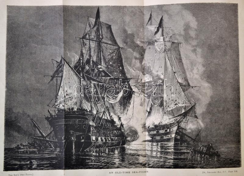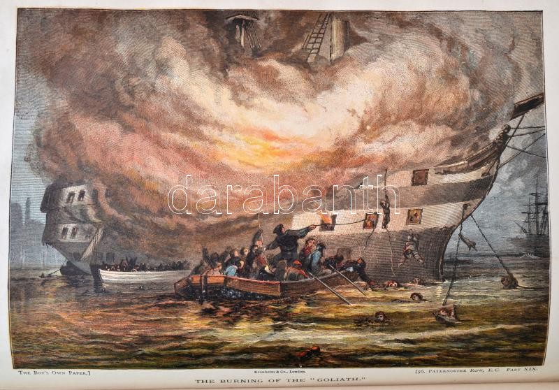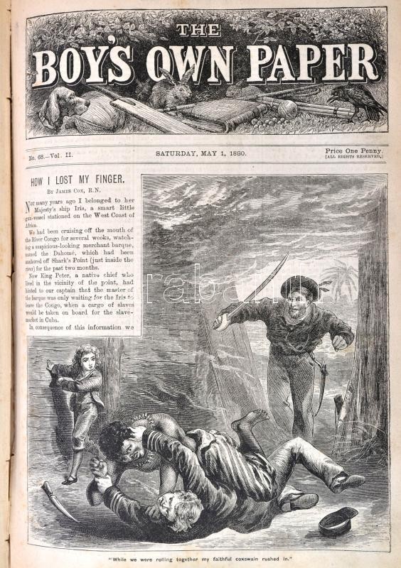 1879-1880 The Boy's Own Paper. II. évf. No.38-89. London, Leisure Hour. Angol nyelven. Rengeteg illusztrációval, közte néhány színes litográfiával is. Egészvászon-kötésben, kopott borítóval, egy kihajtható illusztráció sérült. / 1879-1880 The Boy's Own Paper. Vol. II. No.38-89. London, Leisure Hour. With lot of illustrations, with some colorful litographies, in English language. Linen-binding, with worn cover, one foldable illustration damaged.