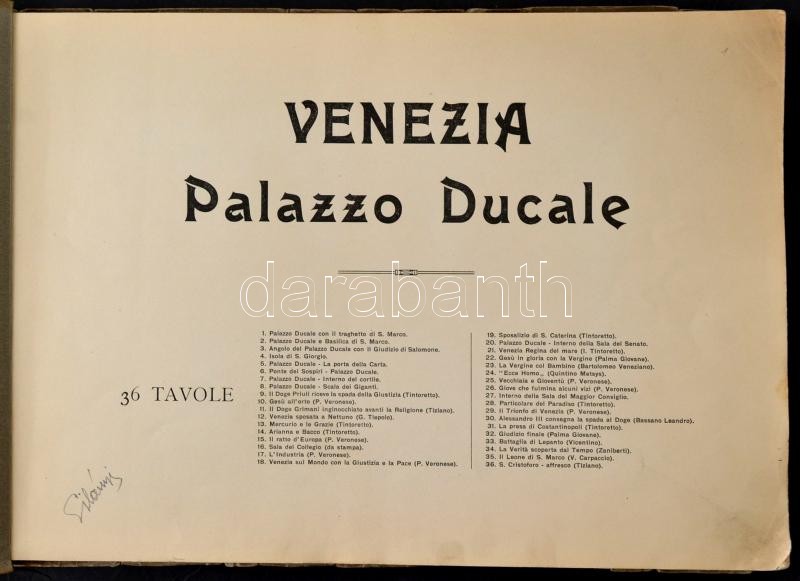 cca 1900 Venice, Venezia; Il Palazzo Ducale Nagyméretű képes könyv. b... https://www.darabanth.com/hu/337-Gyorsarveres/337.0/Mutargy-papirregiseg-egyeb/Nyomtatvanyok~500029/cca-1900-Venice-Venezia-Il-Palazzo-Ducale-Nagymeretu-kepes-konyv-booklet-with-40-pictures-~II1877916