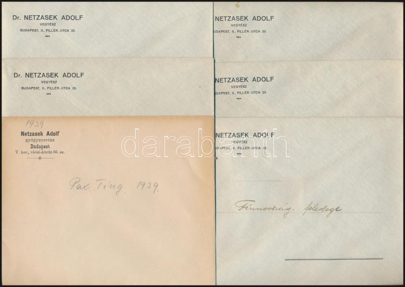 Leírás: cca 1910 14 db boríték Dr. Netzasek Adolf gyógyszerész, vegyész címzésével
