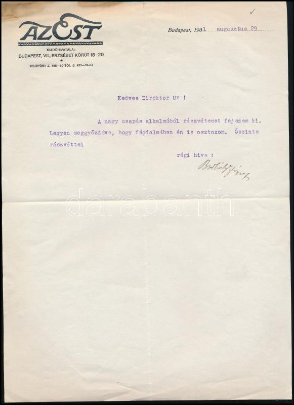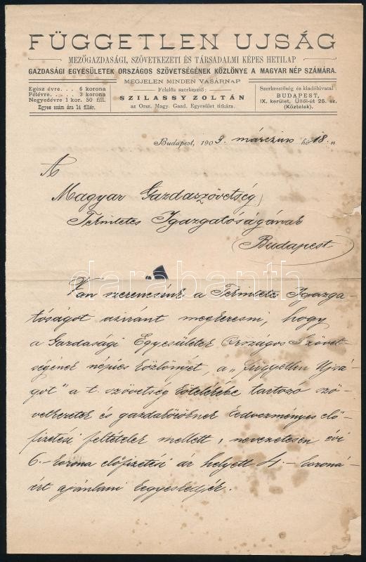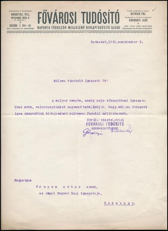 1903-1931 A Független Újság, a Fővárosi Tudósító és Az Est fejléces le... https://www.darabanth.com/hu/337-Gyorsarveres/337.0/Mutargy-papirregiseg-egyeb/Okmanyok~500017/1903-1931-A-Fuggetlen-Ujsag-a-Fovarosi-Tudosito-es-Az-Est-fejleces-levelpapirjara-irt~II1894073