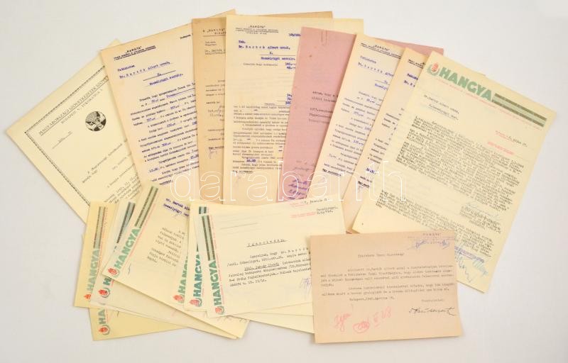 Leírás: 1941-1946 A Hangya Szövetkezet 18 db levele és oklevele