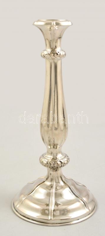 Leírás: Ezüst (Ag.) antik gyertyatartó, jelzett, mesterjeggyel (P.R), m:29 cm, nettó: 241 g, polírozva