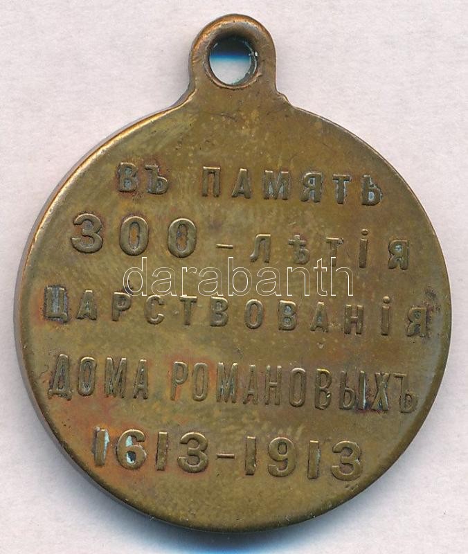 Orosz Birodalom 1913. "A Romanov-dinasztia uralkodásának 300. évfordulója" Br kitüntetés mellszalag nélkül (28mm) T:2 Russian Empire 1913. "300th Anniversary of the Romanov Dynasty" Br decoration without ribbon (28mm) C:XF