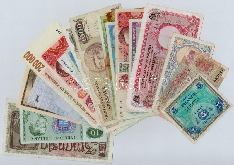 20db-os vegyes bankjegy tétel, közte Katar, Csehszlovákia, NDK, Grúzia, Görögország, Ausztria, Románia, Nigéria és Svédország T:III 20pcs of various banknotes, inlcuding Qatar, Czechoslovakia, GDR, Georgia, Greece, Austria, Romania, Nigeria and Sweden C:F