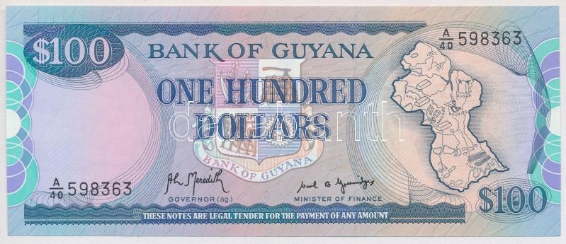 Krause 28 https://www.darabanth.com/hu/337-Gyorsarveres/337.0/Numizmatika/Kulfoldi-bankjegyek~1500013/Guyana-1989-100USD-TI-Guyana-1989-100-Dollars-CUNC-Krause-28~II1849282