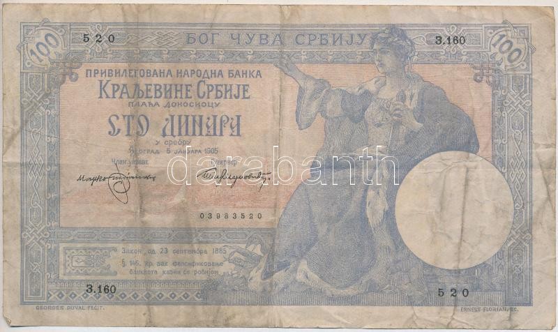 Kraus... https://www.darabanth.com/hu/337-Gyorsarveres/337.0/Numizmatika/Kulfoldi-bankjegyek~1500013/Szerbia-1905-100D-TIII-III--Serbia-1905-100-Dinara-CF-VG-Krause-12~II1892595