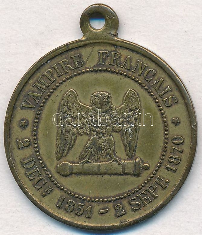 France ~1870. "NAPOLEON III LE MISÉRABLE - 80000 PRISONNIERS / VAMPIRE FRANCAIS - 2 DEC - 1851 - 2 SEPT - 1870" Br satirical medal without ribbon (27mm) C:XF