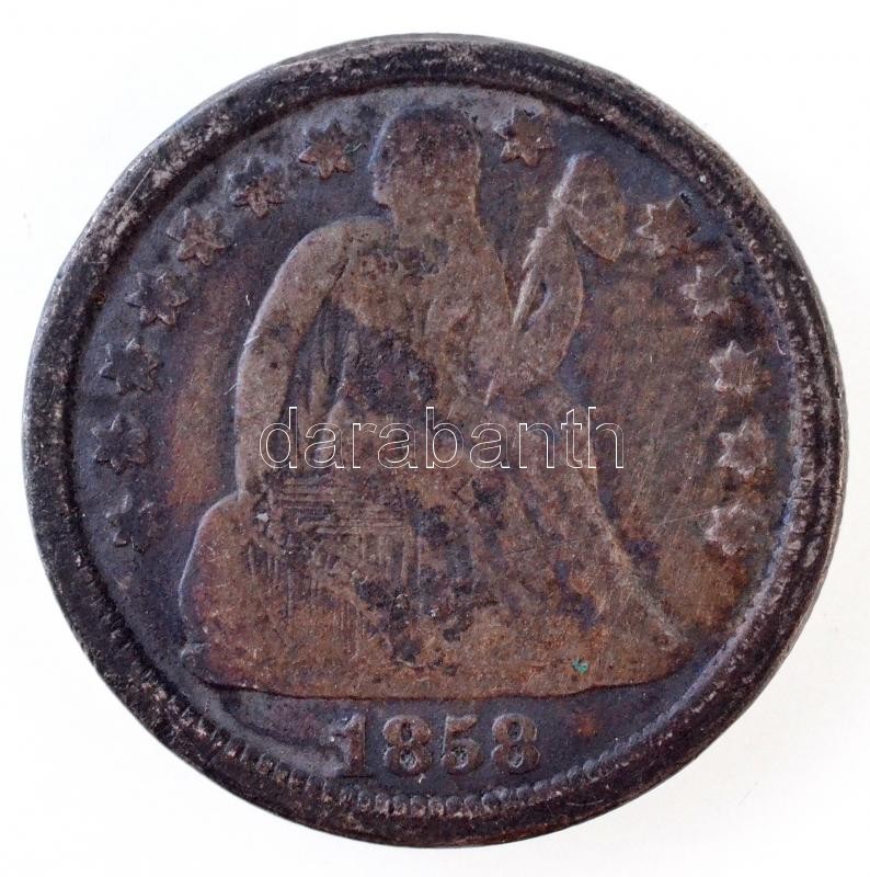 USA 1858. 1 Dime... https://www.darabanth.com/hu/337-Gyorsarveres/337.0/Numizmatika/Kulfoldi-fem-es-ezustpenzek~1500014/Amerikai-Egyesult-Allamok-1858-1d-Ag-T2-3-patina--USA-1858-1-Dime-Ag-CVF-F-patina-Krause-KM~II1894352
