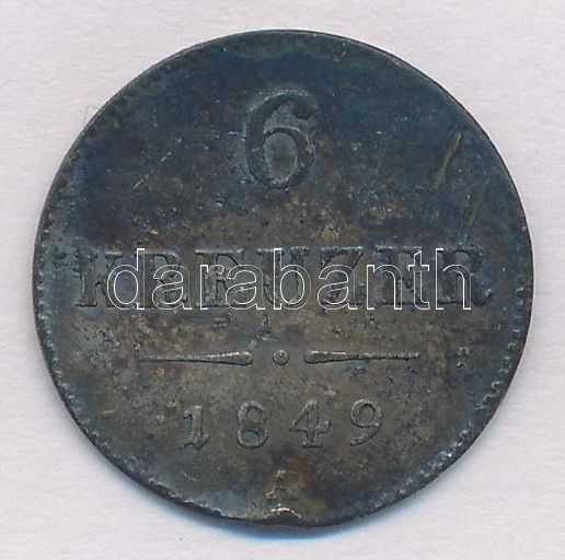 Austria 1849A 6 Kreuzer Ag ... https://www.darabanth.com/hu/337-Gyorsarveres/337.0/Numizmatika/Kulfoldi-fem-es-ezustpenzek~1500014/Ausztria-1849A-6kr-Ag-T2-3-patina-ph--Austria-1849A-6-Kreuzer-Ag-CVF-F-patina-edge-error--Kr~II1892820