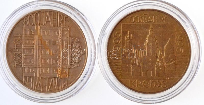 Leírás: Ausztria 1994. 20Sch Cu-Ni-Al "A Bécsi Pénzverde 850. évfordulója " + 1995. 20Sch Cu-Ni-Al "Krems 1000. évfordulója" T:1,1-