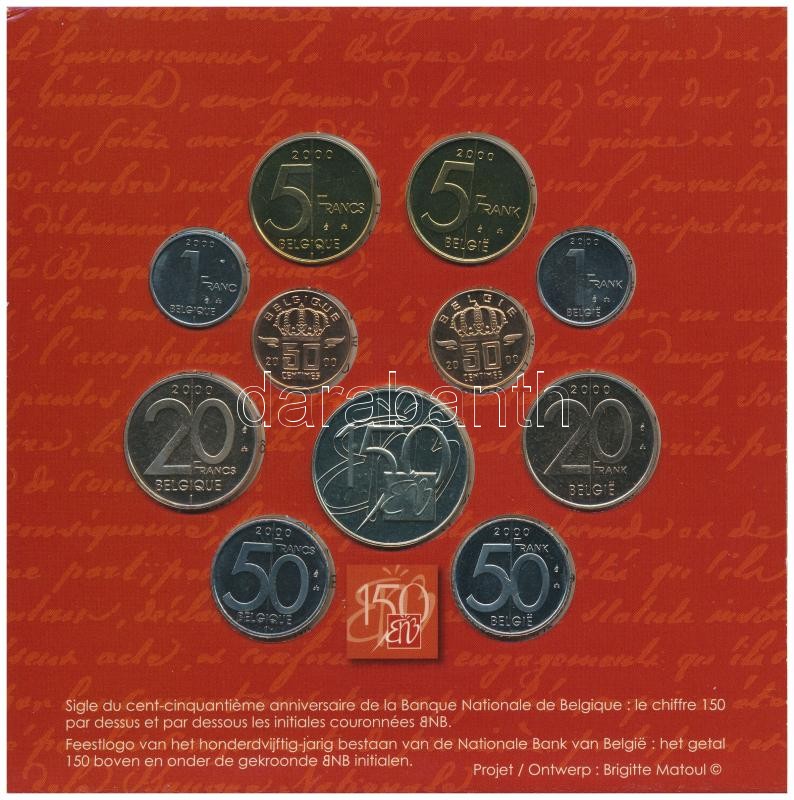 Belgium 2000. 50c-20Fr (5xklf) dupla forgalmi sor (összesen 10 érme) + "150 éves a Belga Nemzeti Bank" emlékérem T:1