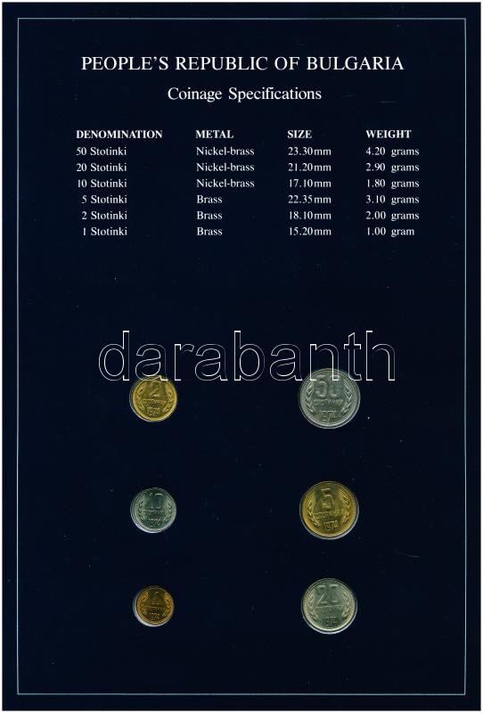 Bulgaria 1974. 1 Stotinki - 50 Stotinki (6xdiff) "Coin Sets of All Nations" coin set on cardboard with stamp C:UNC