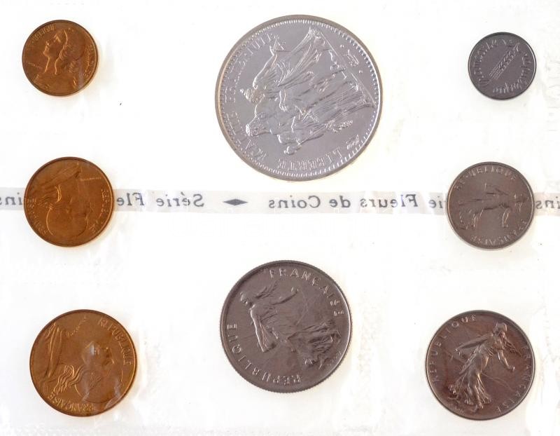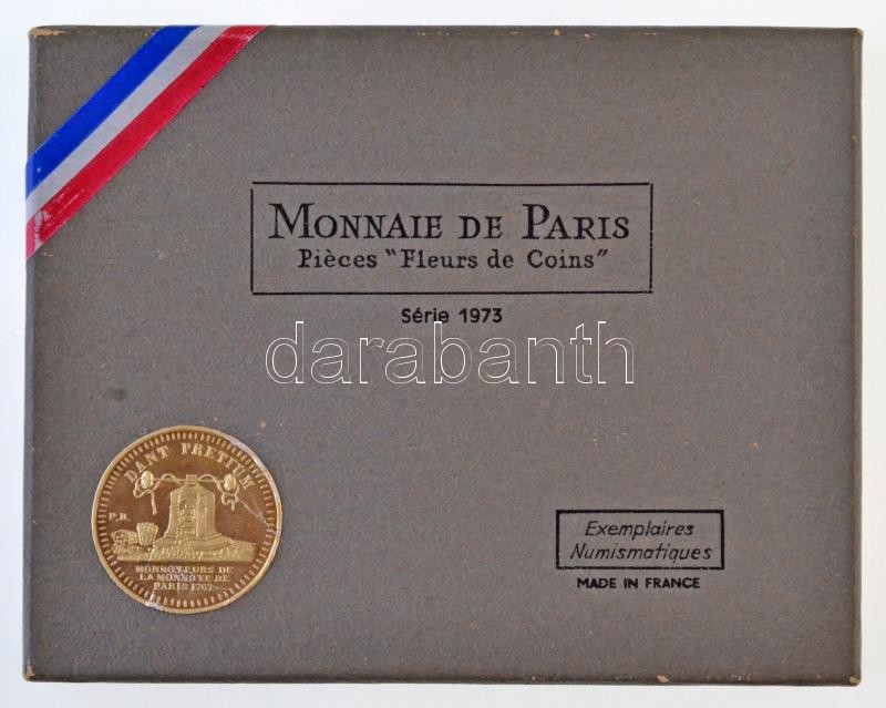 Franciaország 1973. 1c-10Fr (8xklf) forgalmi sor lezárt fóliatokban, közte Ag érme, tanúsítvánnyal, karton dísztokban T:1
