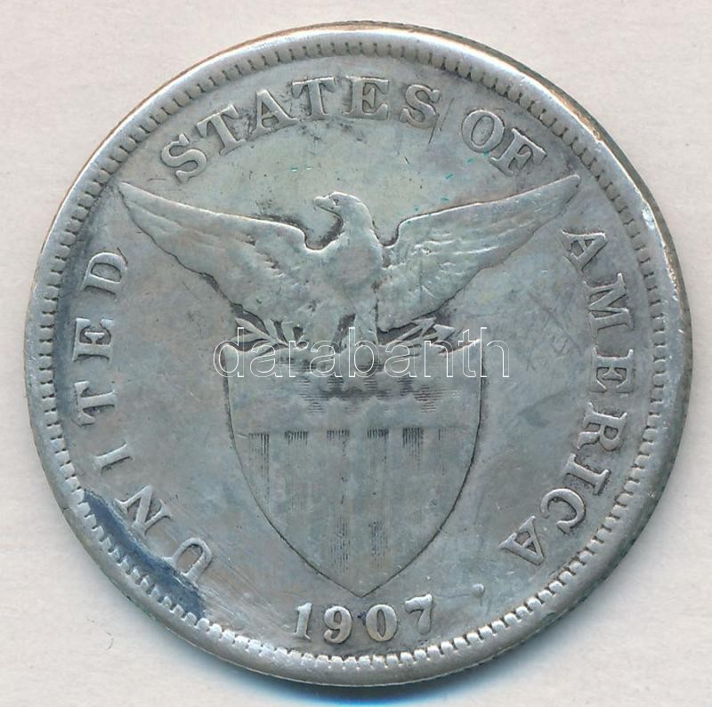 Kraus... https://www.darabanth.com/hu/337-Gyorsarveres/337.0/Numizmatika/Kulfoldi-fem-es-ezustpenzek~1500014/Fulop-szigetek-1907S-1P-Ag-T3-Philippines-1907S-1-Peso-Ag-CF-Krause-KM23172~II1893326