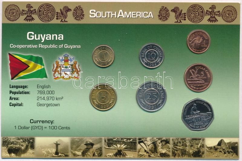Guyana 1978-2002. 1c-10$ (7xklf) fémpénz szettben, holland nyelvű leírással T:1