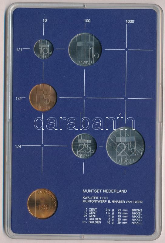 Leírás: Hollandia 1985. 5c - 2 1/2G (5xklf) + 1985. "s Rijks Munt 1985 (Királyi verde)" Br zseton, műanyag tokban T:1 Netherlands 1985. 5 Cents - 2 1/2 Gulden (5xdiff) + 1985. "s Rijks Munt 1985 (Royal Mint)" Br jeton, in plastic case C:UNC