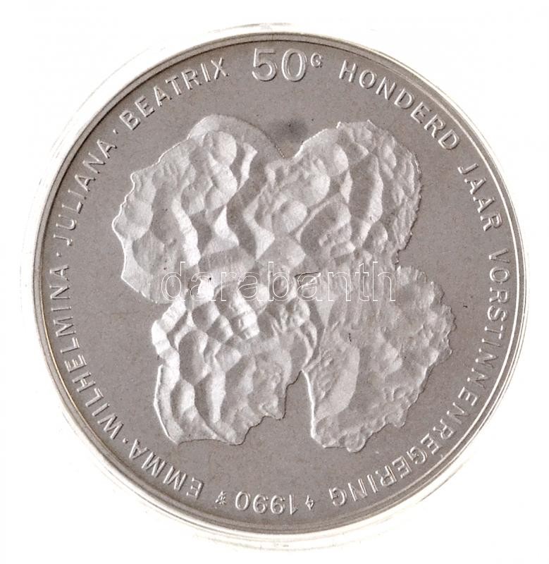 Hollandia 1990. 50G Ag "Királynők 100 éve" dísztokban, tanúsítvánnyal T:1