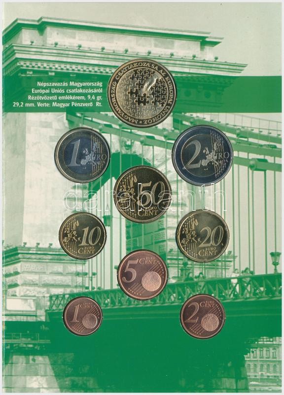 Hollandia 2003. 1c-2E (8xklf) + "Népszavazás Magyarország Európai Uniós csatlakozásáról" fém emlékérem (29,2mm) , "Magyar Nemzeti Bank Információs készlet" forgalmi szett dísztokban, magyar és angol nyelvű T:BU