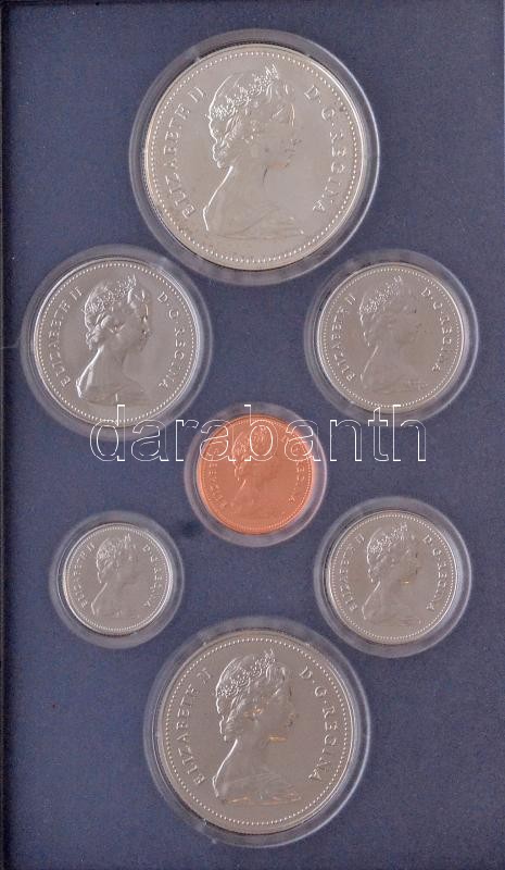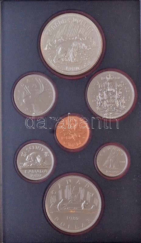 Canada 1980. 1 Cent - 1 Dollar (6xdiff) coin set in original case, 1980. 1 Dollar Ag "Arctic Territories - Polar bear" included C:UNC
