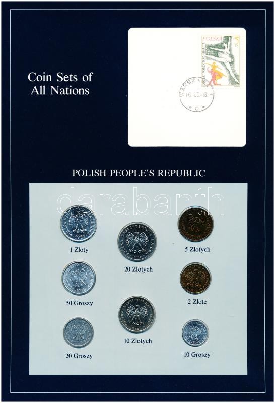 Lengyelország 1979-1985. 10g-20Zl (7xklf), "Coin Sets of All Nations" forgalmi szett felbélyegzett kartonlapon T:1