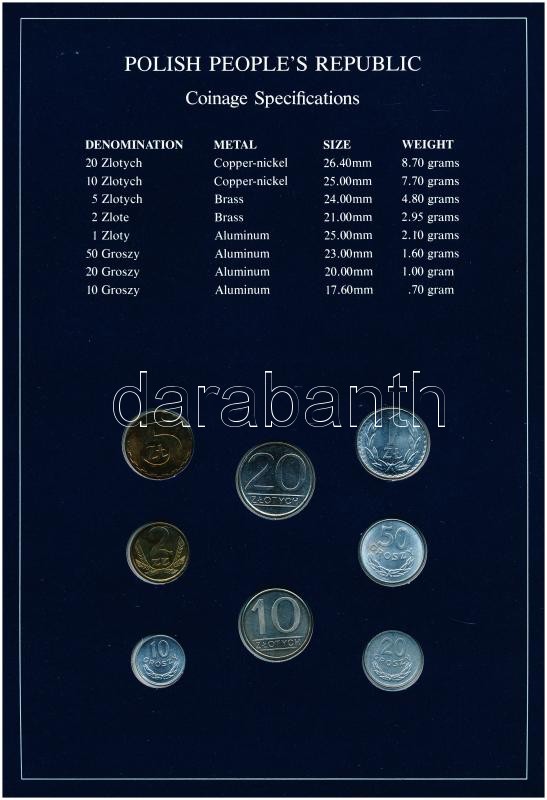 Poland 1979-1985. 10 Groszy - 20 Zlotych (7xdiff) "Coin Sets of All Nations" coin set on cardboard with stamp C:UNC