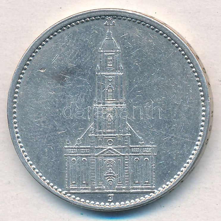 German Third Reich 1934J 5 Marks Ag "1st Anniversary of Nazi rule" C:XF ding