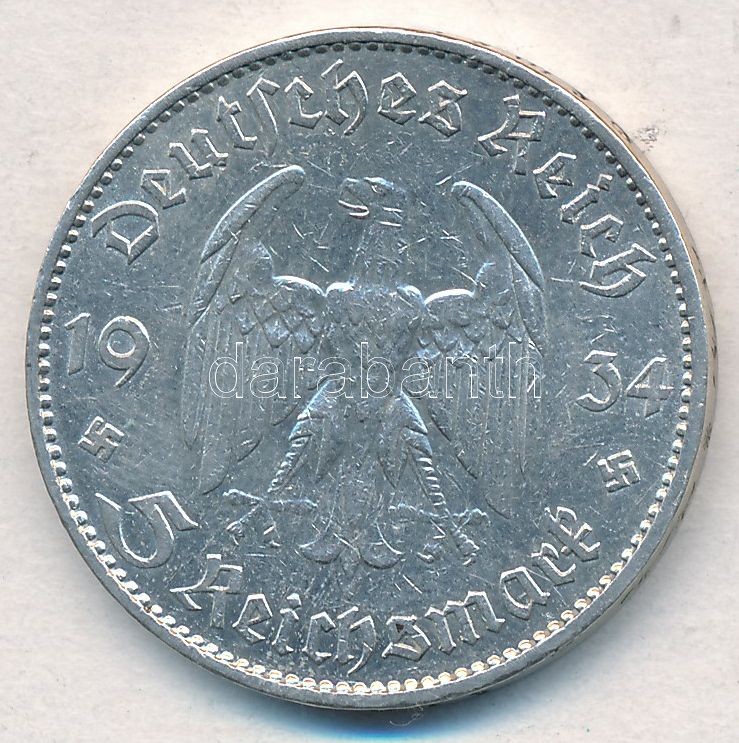 Német Harmadik Birodalom 1934J 5M Ag "Náci hatalom első évfordulója" T:2 ü.