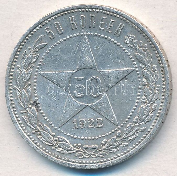 Russi... https://www.darabanth.com/hu/337-Gyorsarveres/337.0/Numizmatika/Kulfoldi-fem-es-ezustpenzek~1500014/Szocialista-Szovetsegi-Szovjet-Koztarsasag-1922-50k-Ag-T2-2--Russian-Socialist-Federated-So~II1889785