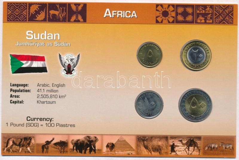 Sudan 2006. 5 Piastres - 50 Piastres (4xdiff) coin set with information in Dutch C:UNC
