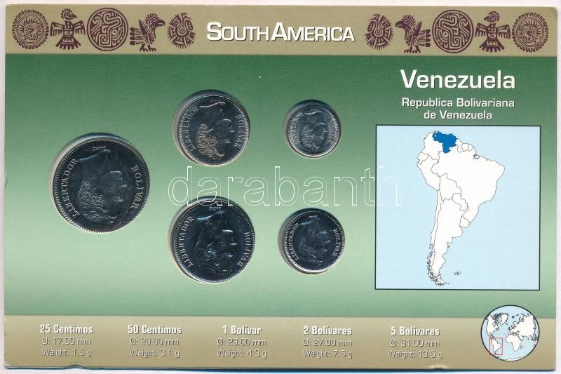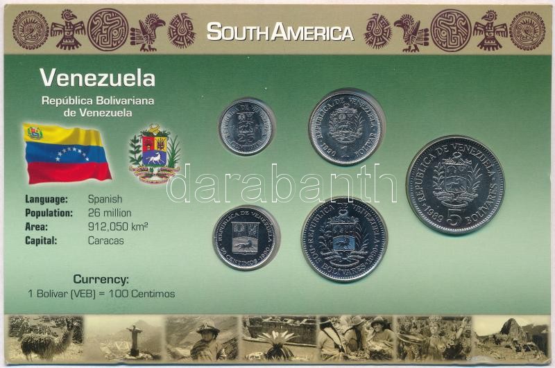 Venezuela 1989-1990. 25c-5B (5xklf) fémpénz szettben, holland nyelvű leírással T:1