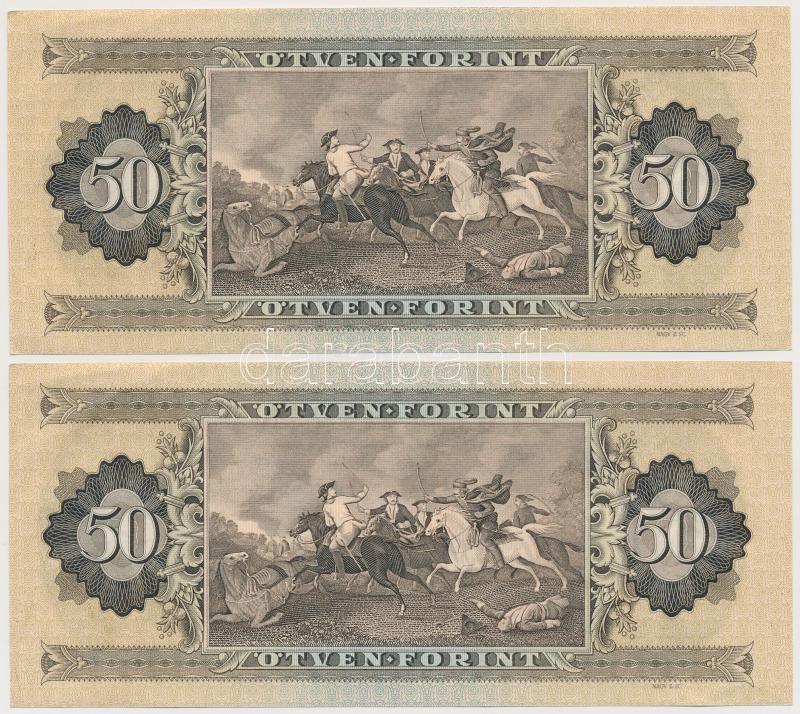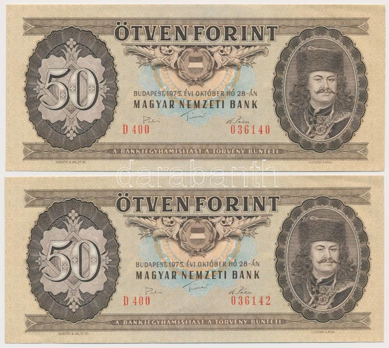 1975. 50Ft (2x) egyugrásos sorszámkövetők, nyomdai papírránccal T:II https://www.darabanth.com/hu/337-Gyorsarveres/337.0/Numizmatika/Magyar-bankjegyek~2000085/1975-50Ft-2x-egyugrasos-sorszamkovetok-nyomdai-papirranccal-TII~II1892999