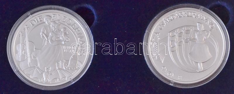 Austria-Hungary coin pair: 2008. "Imre Kálmán / Csárdásfürstin" Ag medallion (20g/0.999/40mm) + "Johann Strauss / Die Fledermaus" Ag medallion (20g/0.925/40mm) in original box with operetta CD, certificates and information C:PP