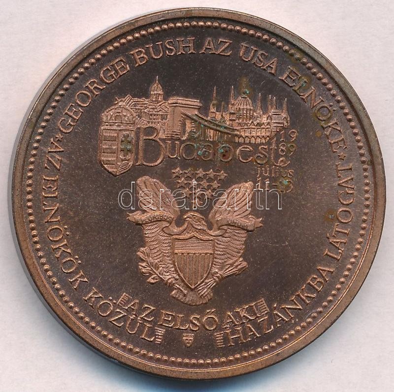 Bozó Gyula (1913-2004) 1989. "George Bush látogatása Magyarország... https://www.darabanth.com/hu/337-Gyorsarveres/337.0/Numizmatika/Magyar-emlekveretek-plakettek~1500010/Bozo-Gyula-1913-2004-1989-George-Bush-latogatasa-Magyarorszagon-Br-emlekerem-42-5mm-T1~II1894551