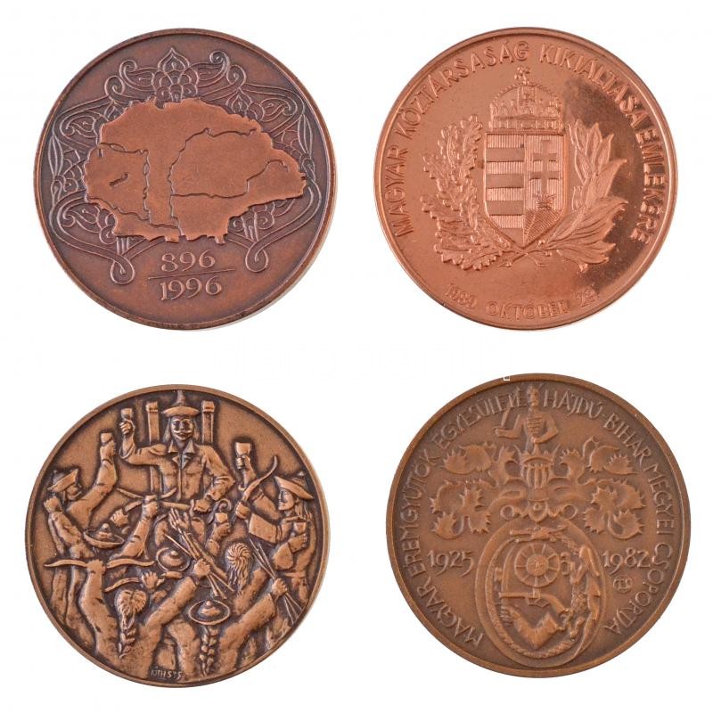 Leírás: Vegyes: 4xklf Br emlékérem tétel, közte 1982. "Magyar Éremgyűjtők Egyesülete - Hajdú-Bihar Megyei Csoportja", 1996. "896-1996 A honfoglaló Árpád vezér" T:2